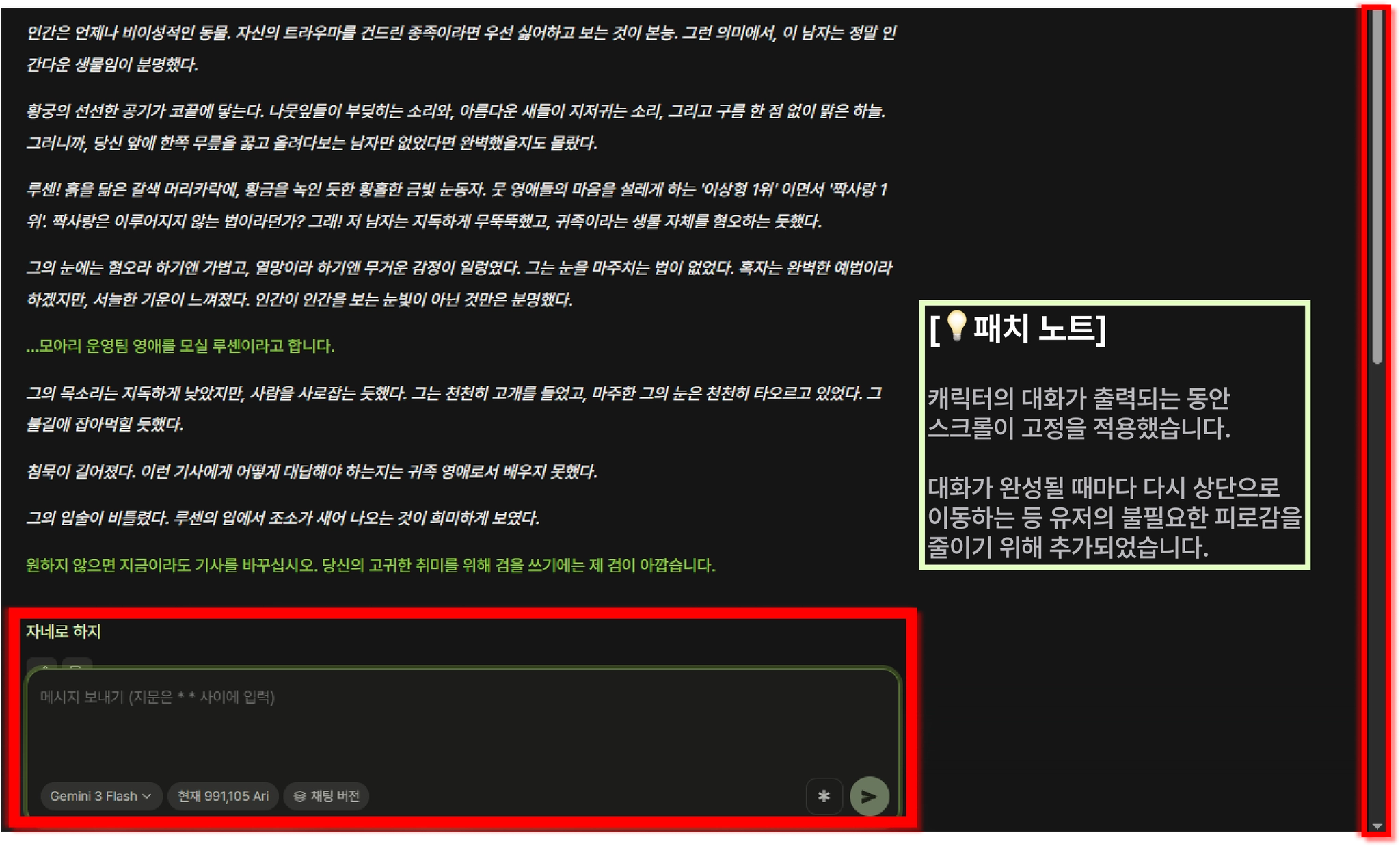 그 이후에는 새 답변이 생성되어도 화면이 자동으로 움직이지 않도록 처리해, 작성 중이던 메시지나 위쪽 대화를 보는 흐름이 덜 끊기도록 적용했습니다. 감사합니다.